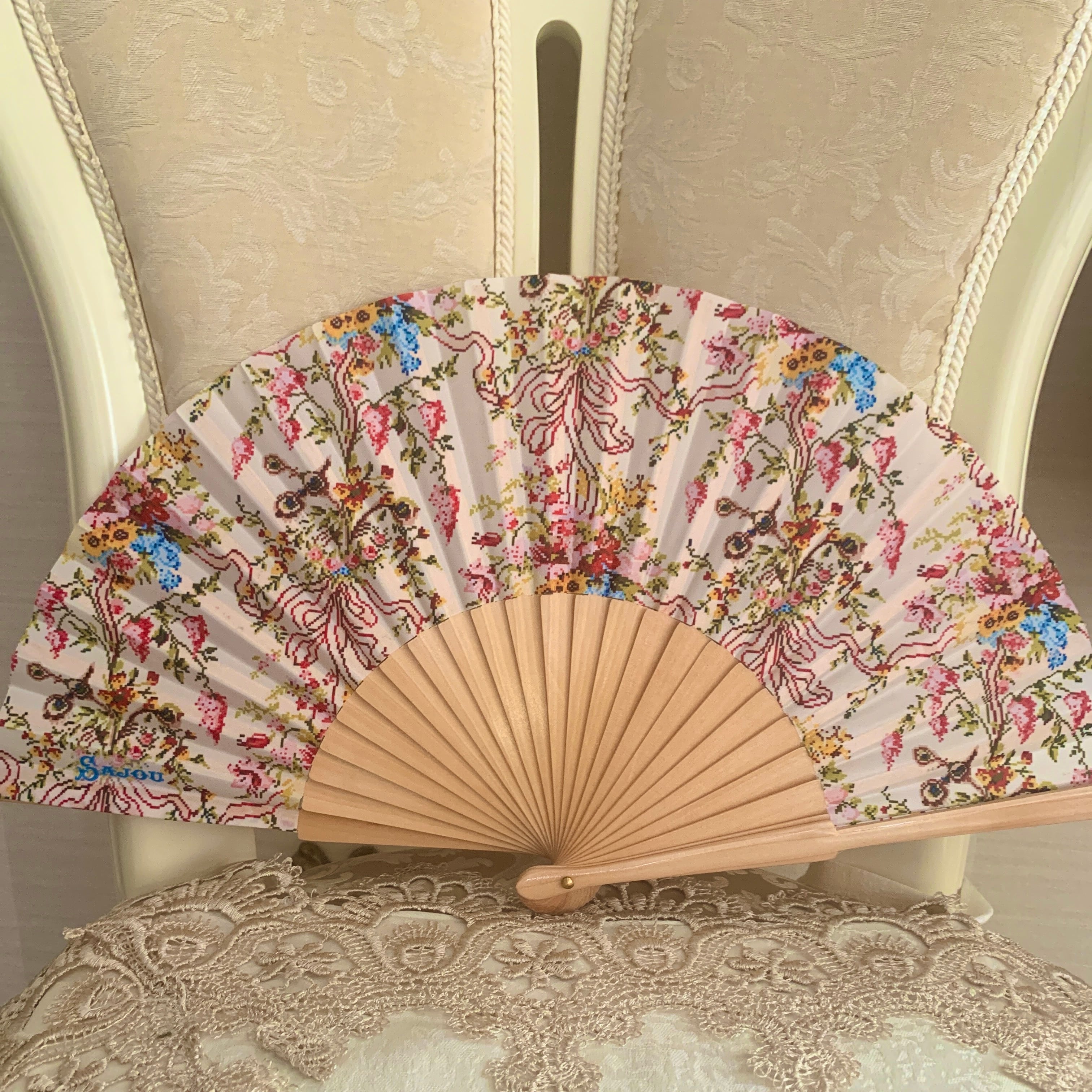 ヴェルサイユから届いたフランス製マリーアントワネットの王妃の寝室柄の扇子です。
