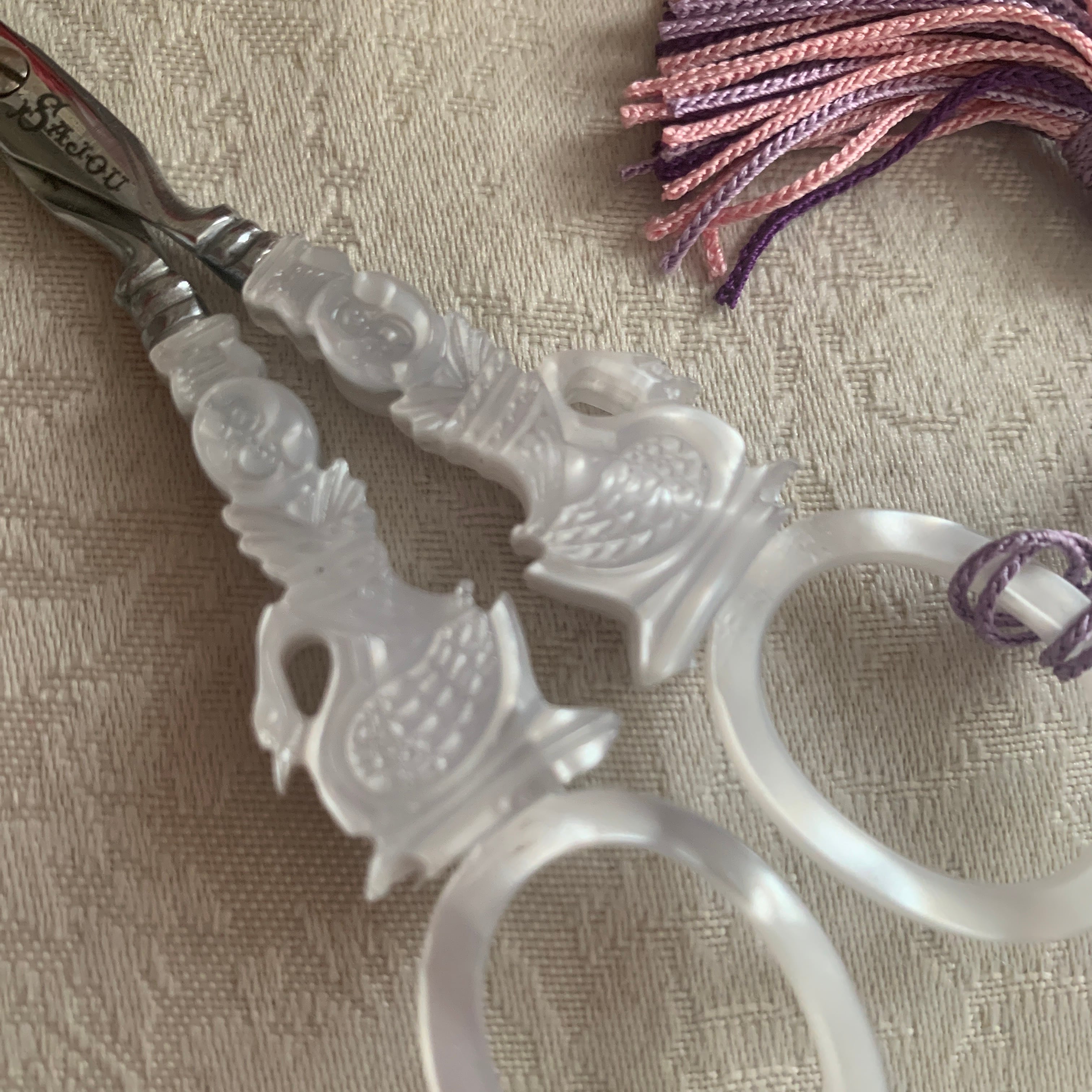 フランスの有名手芸店サジューのマザーオブパールタイルのハサミです。