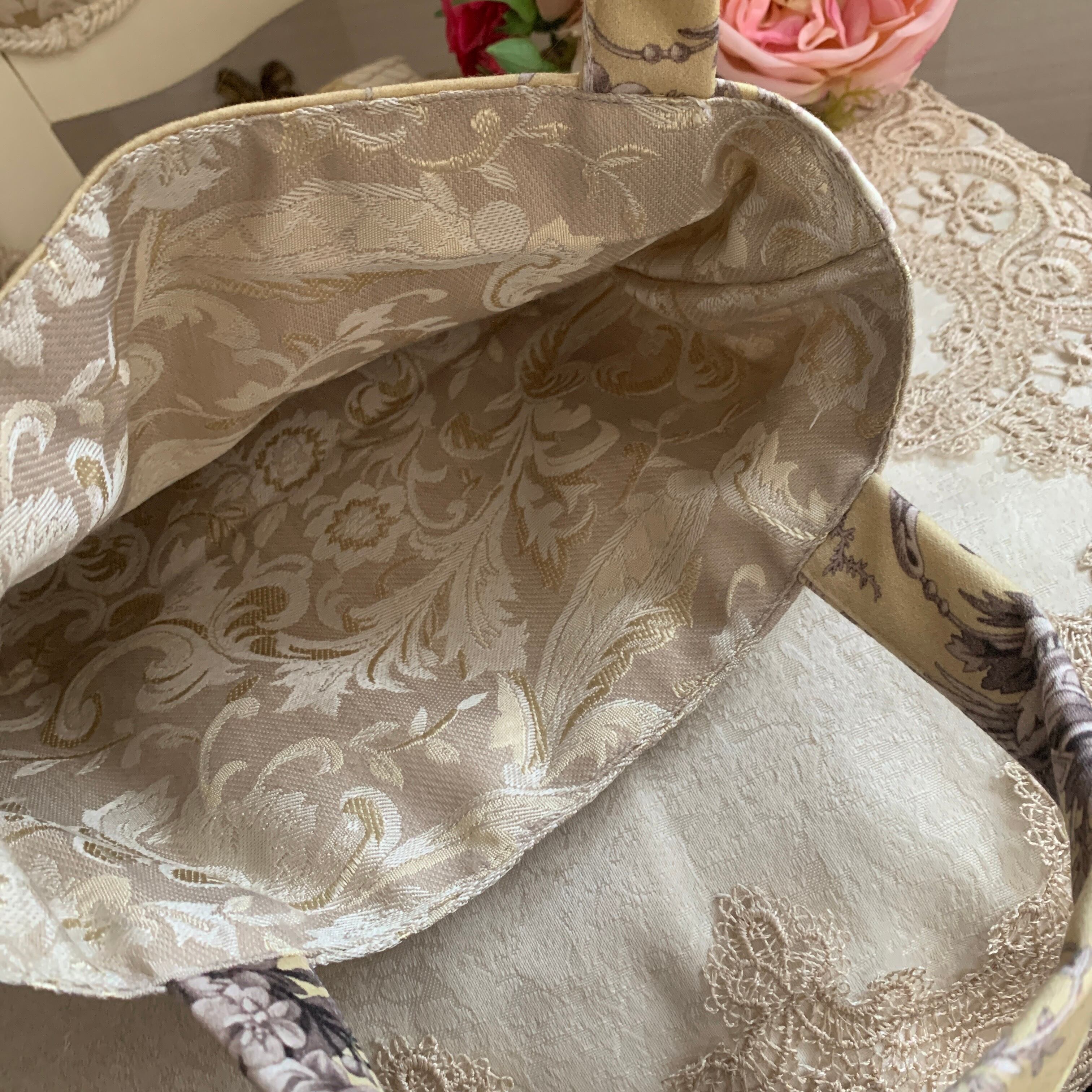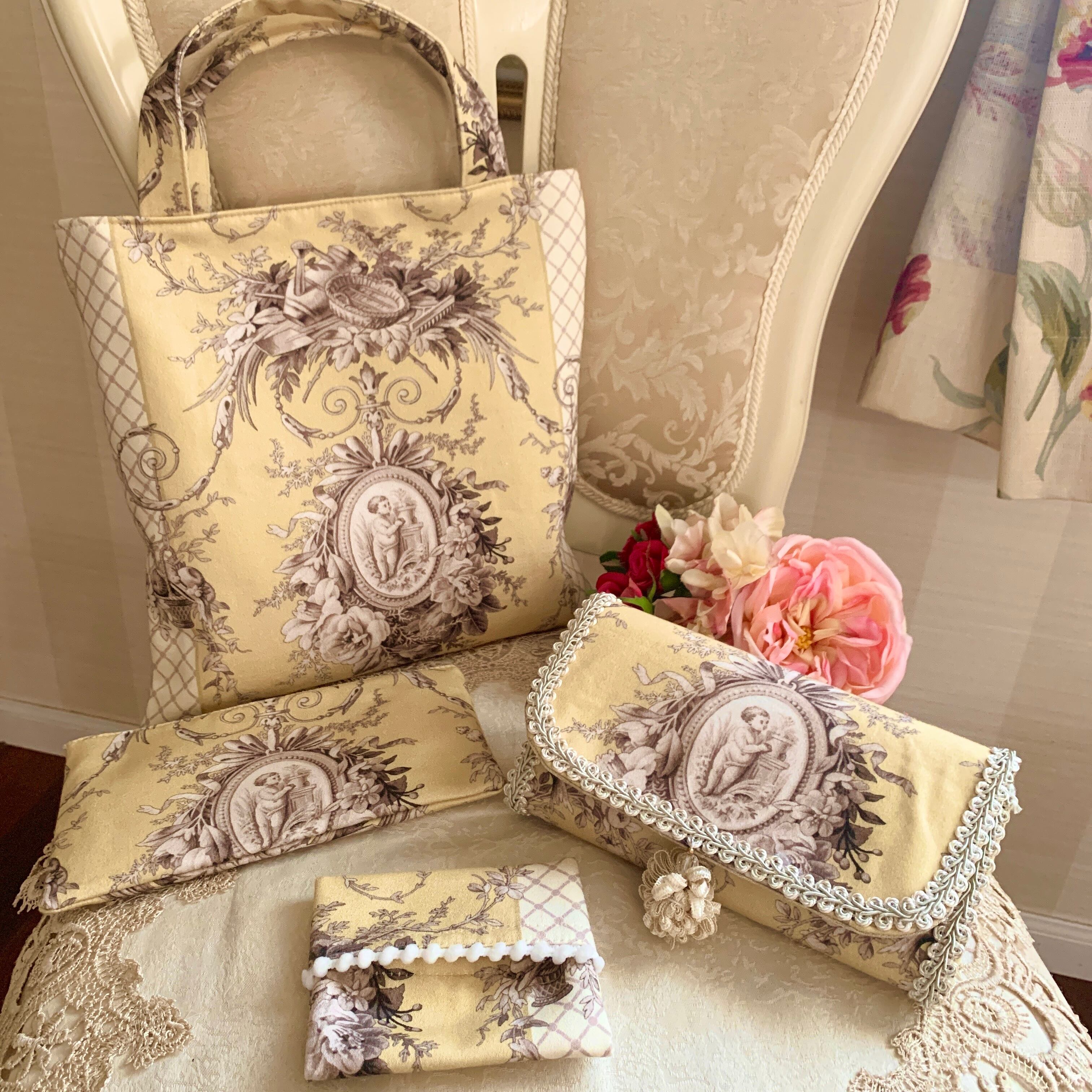 スペイン産のトワルドジュイの天使メダリオンのクリームイエローのお生地で作ってみました。