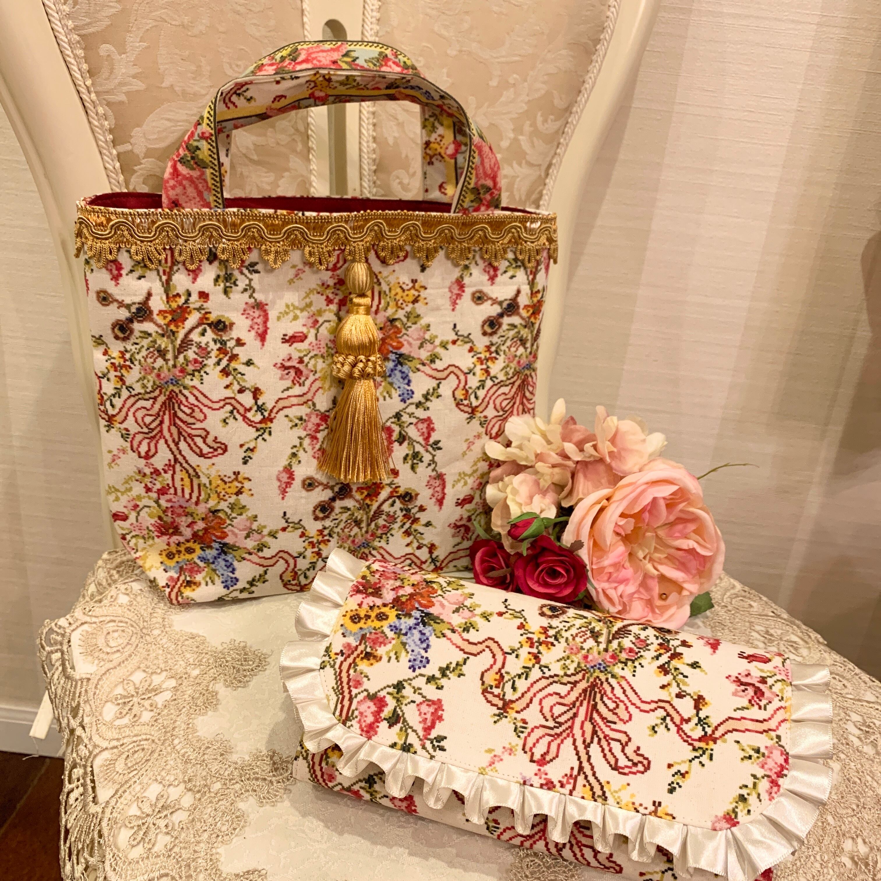 ハンドメイドのマリーアントワネットの寝室の長財布とトートバッグです。