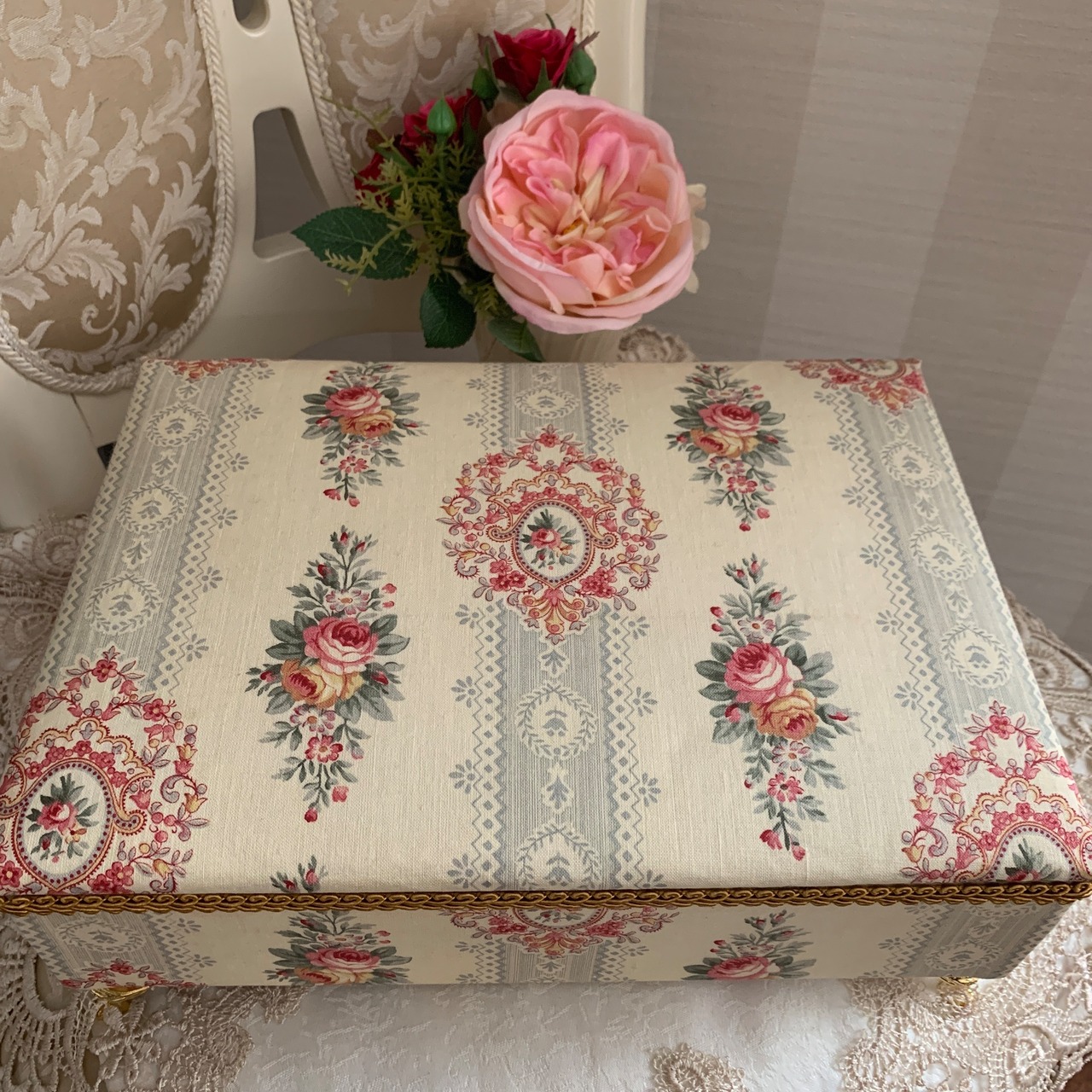 フランスのアンティークファブリックでお作りした猫足付きのボックスです。