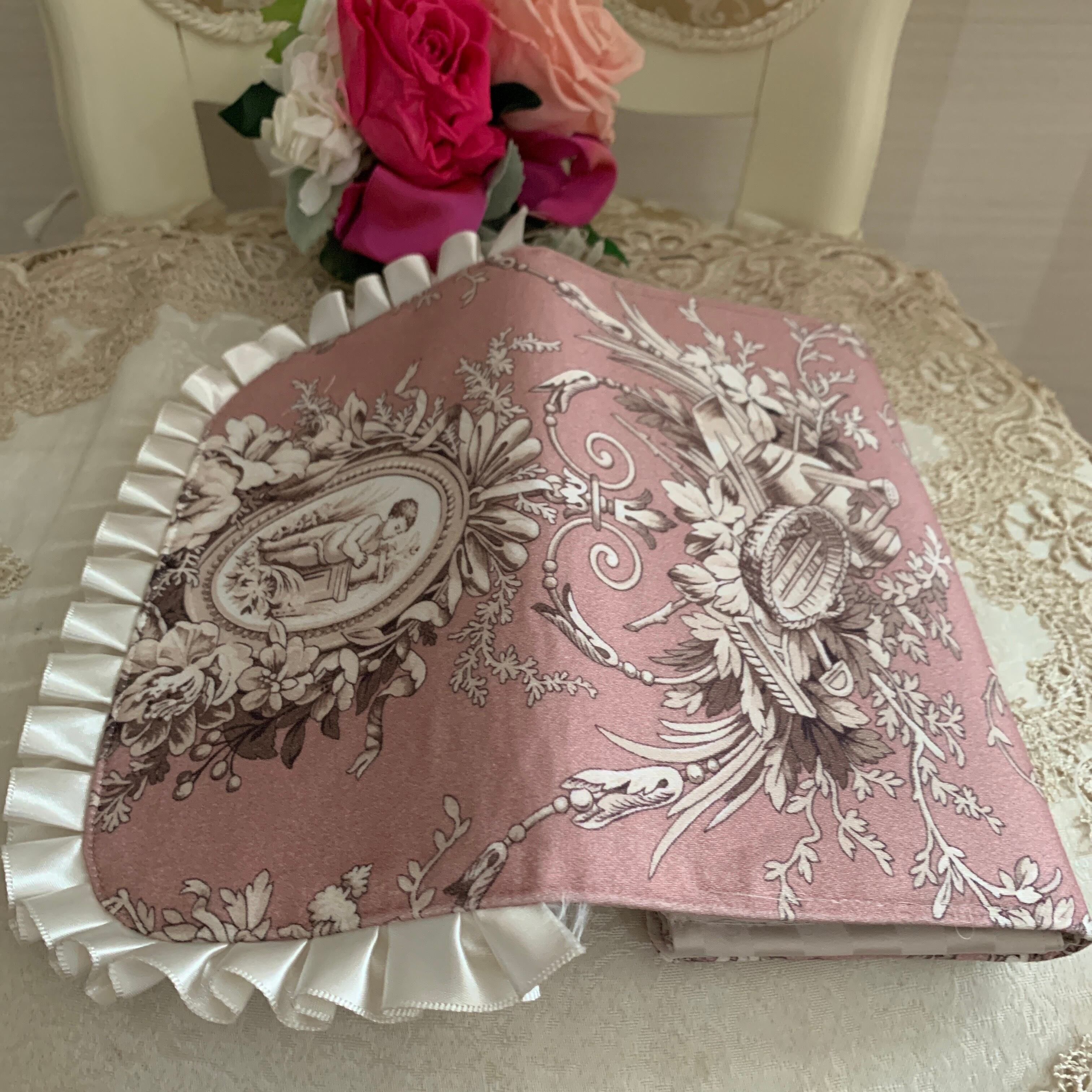 スペイン産のトワルドジュイの天使メダリオンのピンクのお生地で作ってみました。