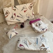 ※ご希望の方に先着順でSAJOUのハサミ柄ファブリック(写真最後)で作ったミニポーチ、袱紗、針山のいずれかをおまけでランダムに同封します^^